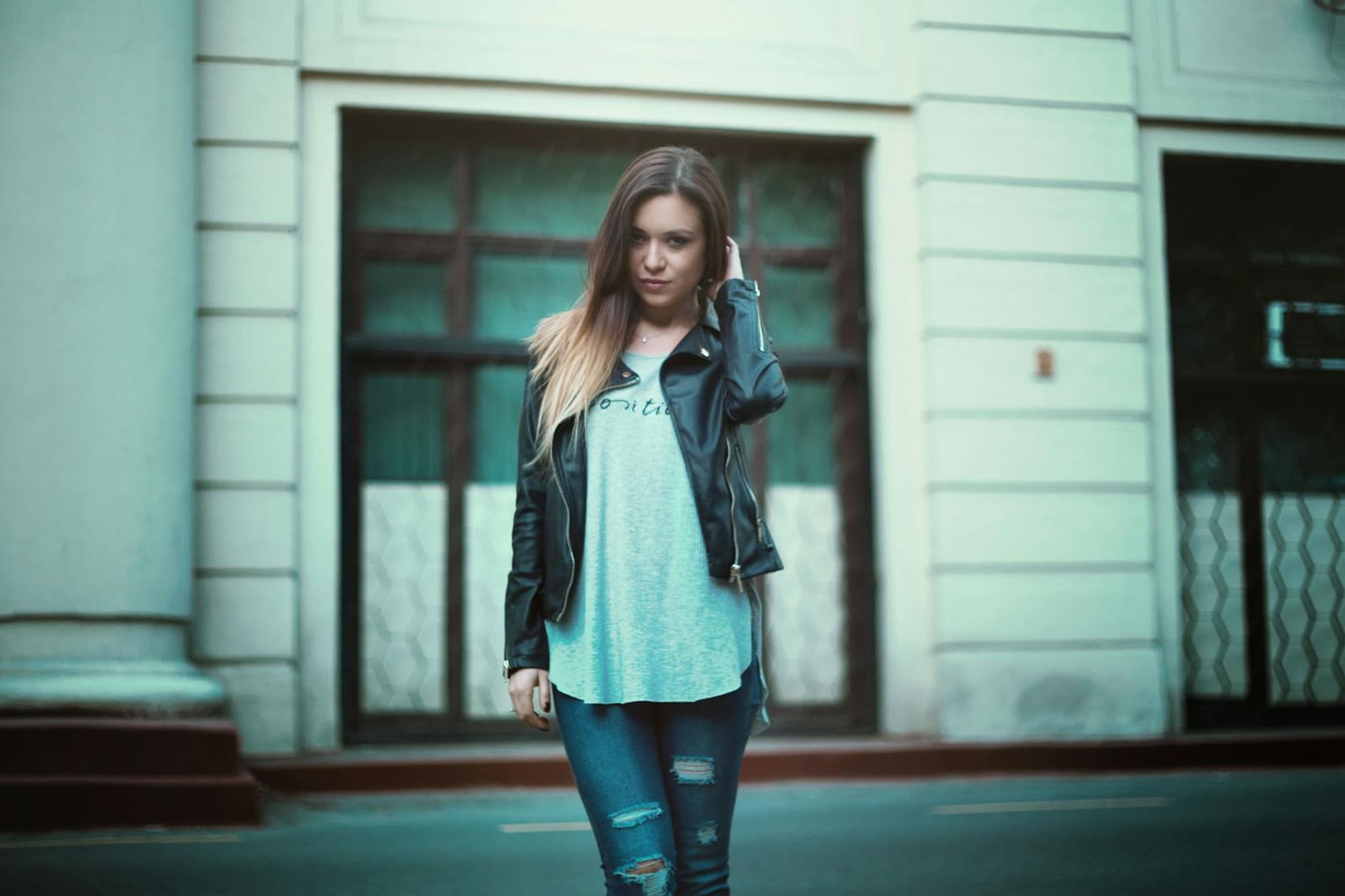 How do you prevent leather jackets from looking too heavy with jeans?